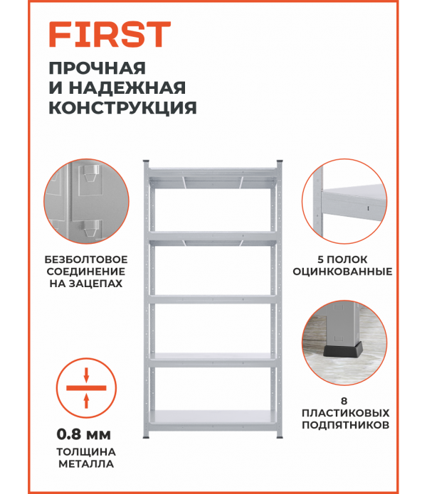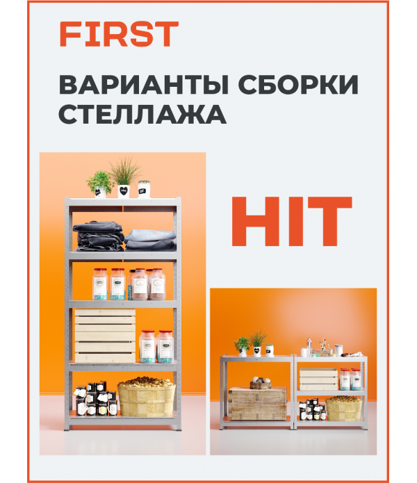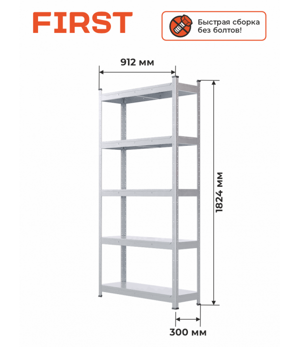 Стеллаж HIT 912x300x1824 мм, 5 металлические полок, оцинкованный создается из высокопрочной оцинкованной стали, что гарантирует надежность и долговечность конструкции.