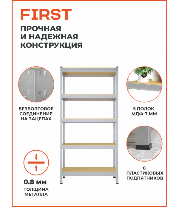 Стеллаж HIT BOARD 912x500x1824 5 полок, корпус оцинкованный создается из высокопрочной оцинкованной стали, что гарантирует надежность и долговечность конструкции.