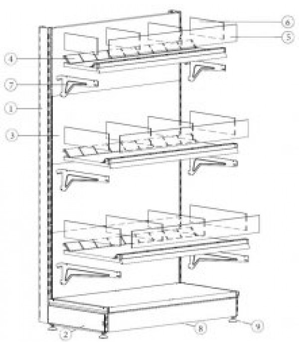 4. Полки сплошные, выполнены из листовой стали t=0,6 ммНижняя полка имеет ценникодержатель.