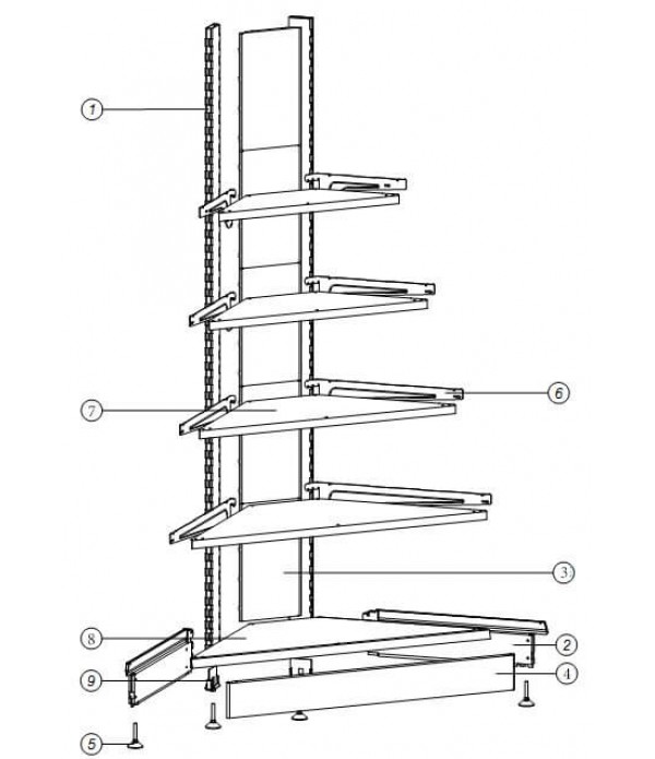 Основные элементы наружного углового стеллажа (УН):